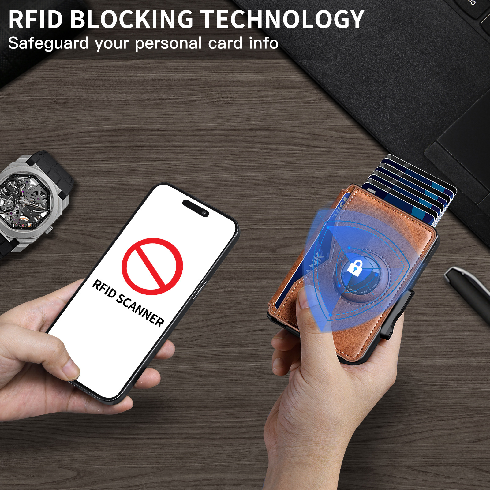 ✨Wallet - With Pop Up Aluminum Case Money Clip Slim Leather Slots Credit Card Holder RFID Blocking Bifold Minimalist Wallet